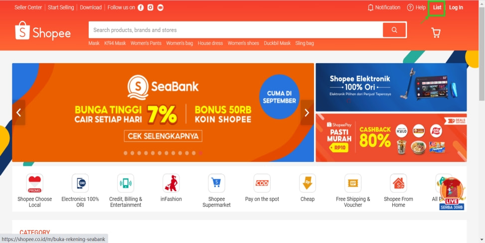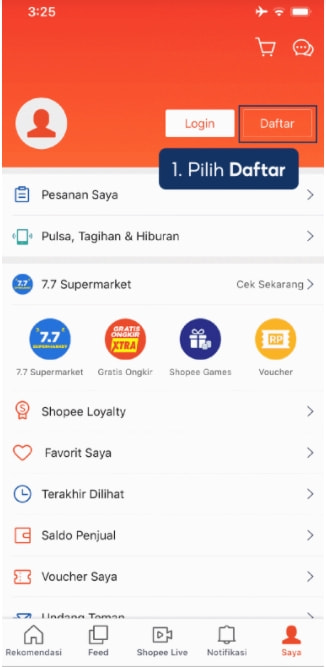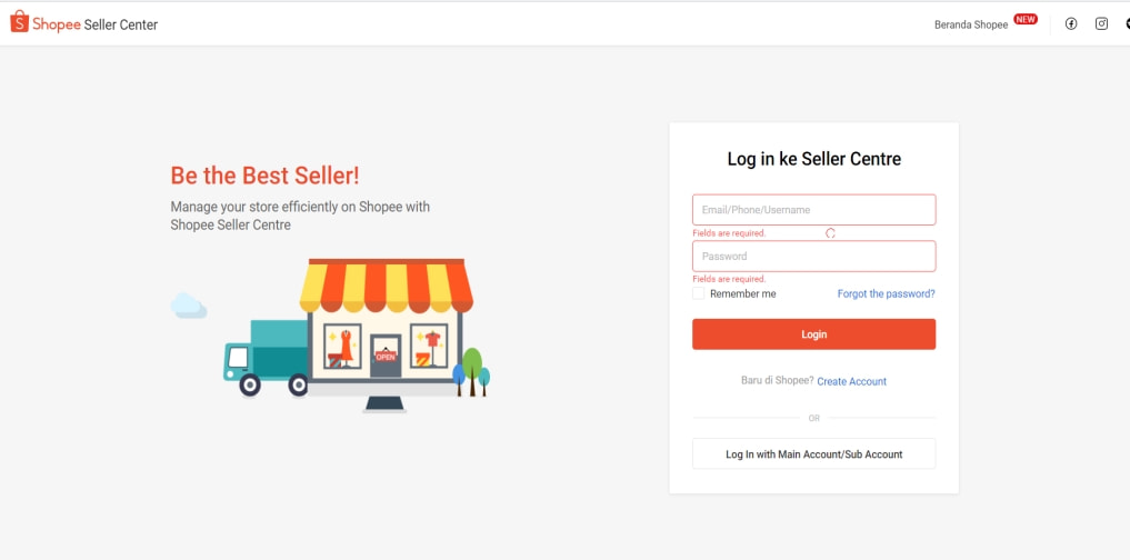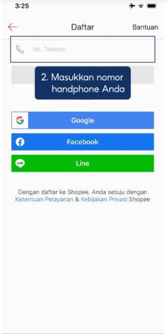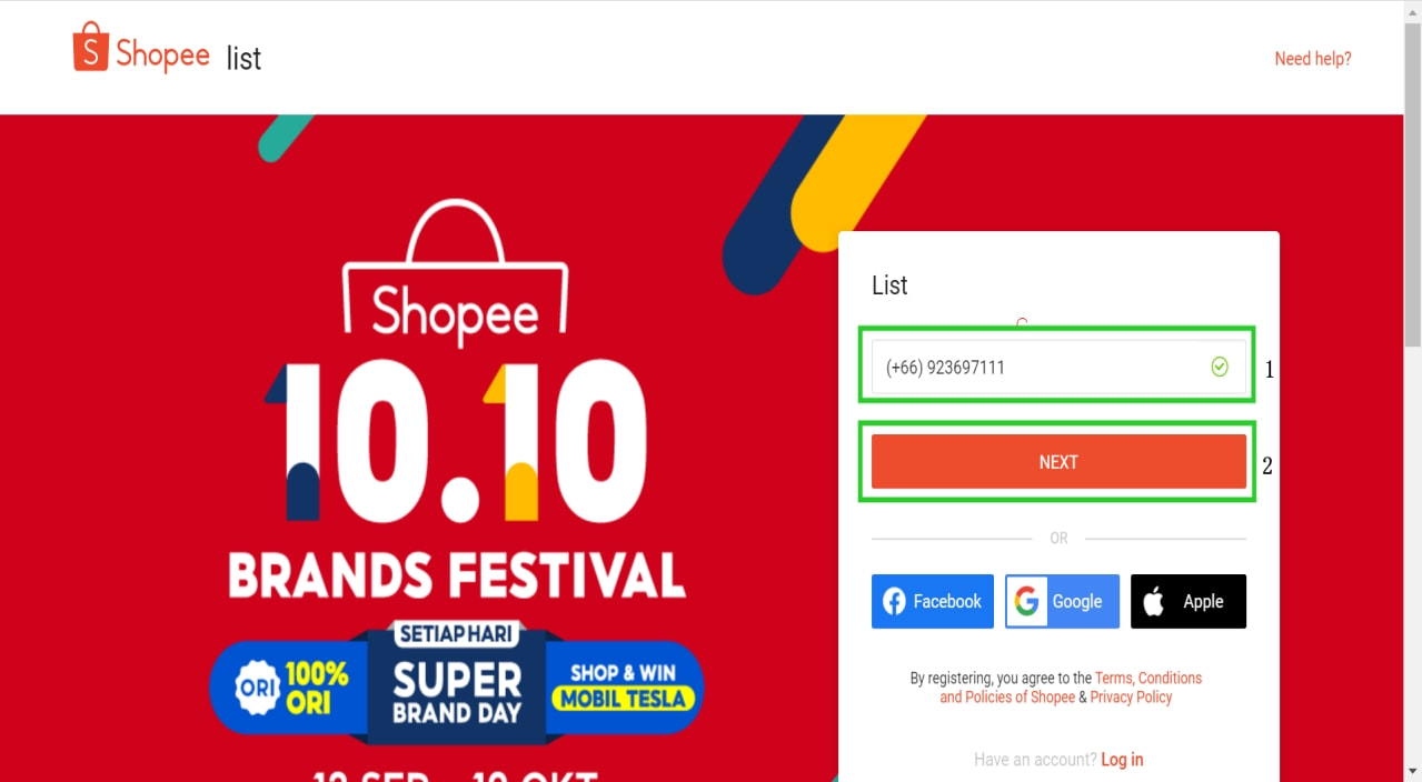 1. 访问图中所指示位置,(输入您的本土手机号码然后使用您注册的手机号码或者电子邮件进行验证,确保您的电子邮件地址和手机号码从未用于注册 Shopee)注册成功,即可登录
